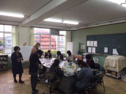 たくさん集まったベルマークの整理のために,ベルマークボランティアの方を中心に,PTA,保護者の方々で整理をしていただきました。学校の設備を充実させるために,とても大変な整理の作業をしていただいています。