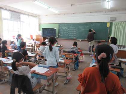2年生もいよいよ九九の学習に入りました。かけ算の式の意味を考えて,そして,九九をつくっていくことで,九九の概念が身に付くようにしています。