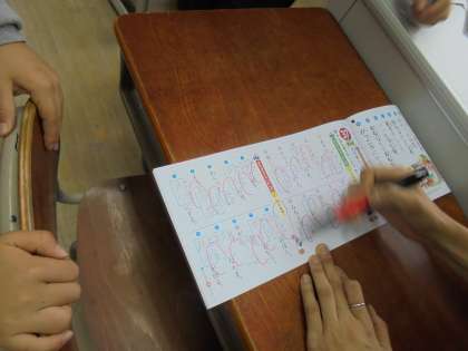 漢字ドリルに丁寧に書き込み,担任などが確認しながら学習をしています。