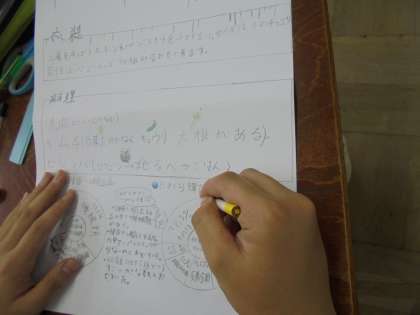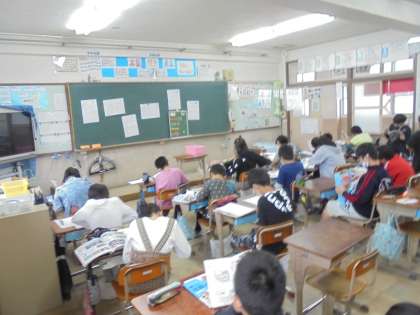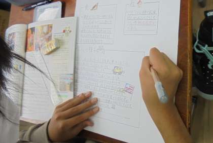 自分たちが調べた世界の国々のことを画用紙にまとめました。それぞれの国の特徴をしっかりとまとめています。