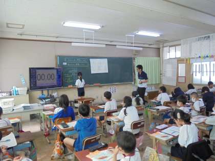 552÷24のひっ算の仕方について学習しました。商をどこに立てればいいのかを話し合いながら考えました。