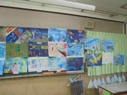 絵を並べて,絵の鑑賞を行いました。友達の作品の良いところをたくさん見つけました。