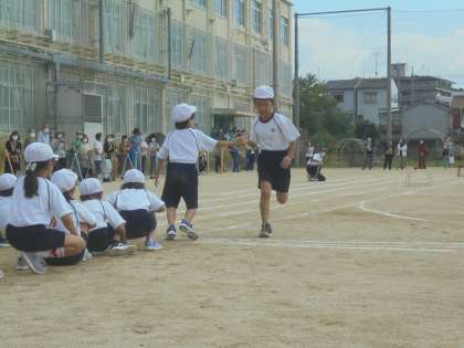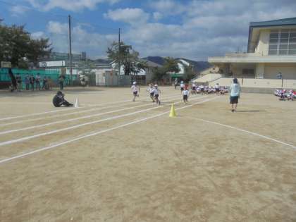 秋晴れの空のもと,令和2年度,体育参観が行われました。