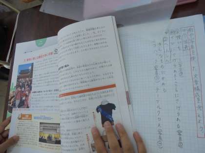 例や写真を使った文章構成の工夫を見つけ,自分たちで例や写真を使った文章構成を考える学習をしています。