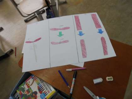 自分たちが作ったおもちゃの作り方の説明する文章と絵を仕上げています。