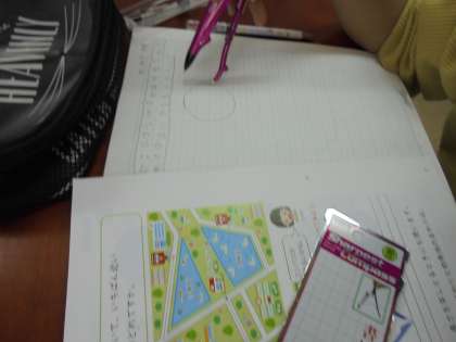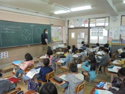 コンパスを使って,教科書に書かれている模様をかきました。中心をどこにもっていくのか,コンパスの幅をどのようにすればよいのかを考えていました。