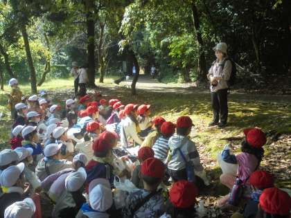 広場で注意事項を確認して,自由にどんぐりや落ち葉を拾いました。