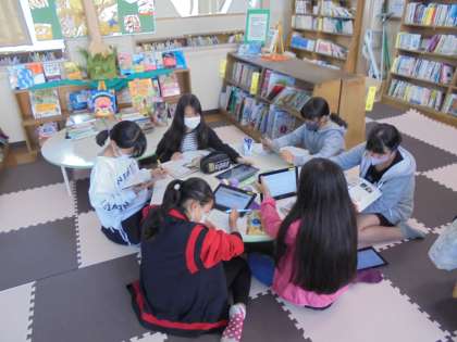 学校図書館やコンピュータ室で,調べ学習をしています。