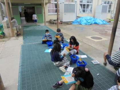 出てきた芽をさわったり,じっくり見たりして,観察カードにしっかりと絵と文でかくことができました。