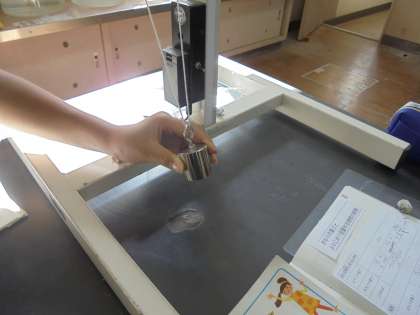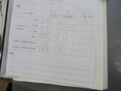 グループで,条件を変えて,時間を計り,ワークシートに結果を書き込みました。