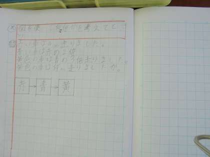 数量関係をノートに書いて,学級で考えることができました。