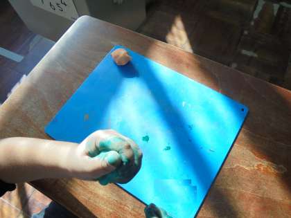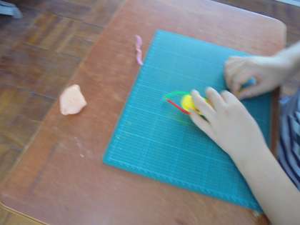 紙粘土に色を付けて,人を作りました。形を整えて,体の部分を作っていきました。