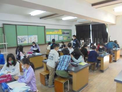 電磁石には,N極やS極があるのかを学習しました。電池で電磁石に電流を流して,方位磁針で調べました。