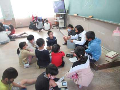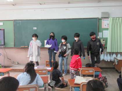 11月25日に「50周年フェスティヴァル」があります。たてわりグループで,学校のたくさんのゲームコーナーをまわります。それぞれのグループのリーダーが「どこからまわる?」「どのコーナーに行きたいですか?」とたずねて,予定を立ててくれていました。6年生が,優しく明るくグループをまとめてくれていました。グループで仲よく話し合いができました。