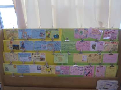来週からの読書週間に向けて,先生による本の紹介カードも展示が始まっています。100冊読書を達成している子も増えてきました。秋の夜長,読書の秋を楽しんでほしいです。