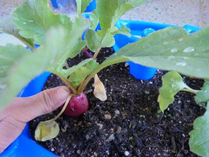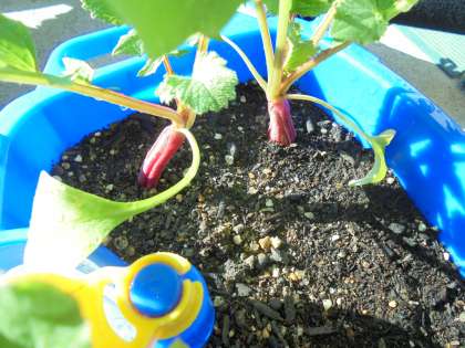 二十日大根が大きくなりました。大きくなった二十日大根をしっかりと観察していました。