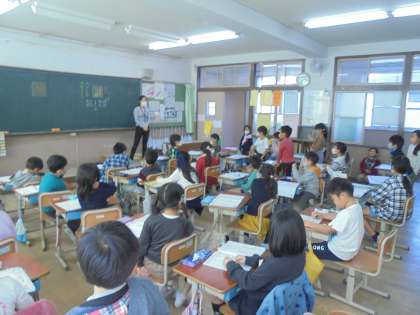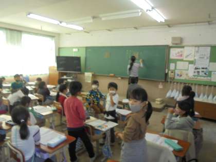 新出漢字を使って,言葉を出し合いました。生活の中で使っている言葉から考えて発表をしていました。