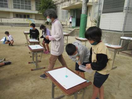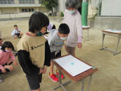 影がどう変化するかを調べて,太陽の動きを調べました。