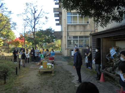初めに,おやじの会会長からの挨拶と学校長からの挨拶,地域の方からの本日の作業についての説明があり,作業を行いました。