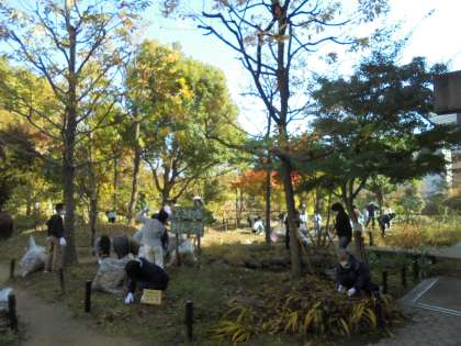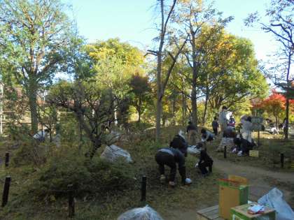 子どもたちは,どんぐりの実などを見つけながら,たくさんの落ち葉を拾い集めたり,雑草を抜いたりしていました。