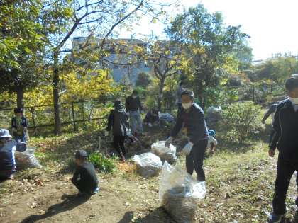 少し休憩を取り,後半も雑草を抜いたり,落ち葉を集めたりして清掃活動を行いました。