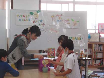 今週は読書週間です。図書委員会では,中間休みに図書館で,ビブリオバトルのデモンストレーションを行いました。金曜日に,ビブリオバトルを行います。参加してくれる子どもたちの活躍が楽しみです。