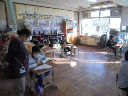 全校で取り組んでいる合唱の「永遠のキャンバス」などを歌って学習をしています。