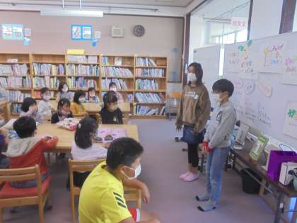2年生と4年生の3人が本を紹介してくれて,みんなが読みたくなった本を投票しました。それぞれ,みんなの前でしっかりと本を紹介し,質問にも答えていました。どの本もぜひ読んでみてほしいと思いました。