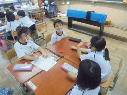 1年生も係活動をはじめました!まだ自分の係を決めたばかりで,今日は仕事内容を考える会議をしました。さっそく「雨の日の休み時間にクイズをしたらいいかなぁ」と意欲的な意見がでていました。