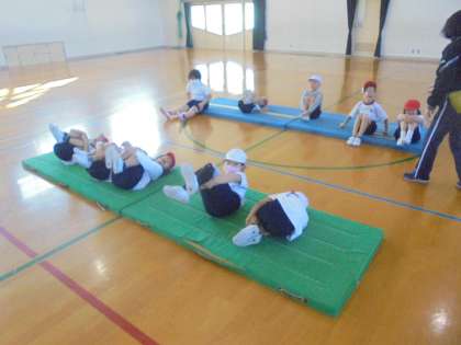 今日からマットあそびが始まりました。マットの準備も自分たちでします。初めて準備をしましたが,友だちと協力して運ぶことができていました。