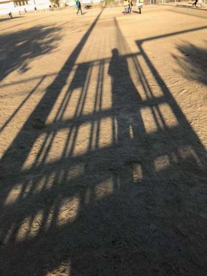 今日,朝に門に立っていると,いつも見ている影が,とても長くなっていることに気付きました。
