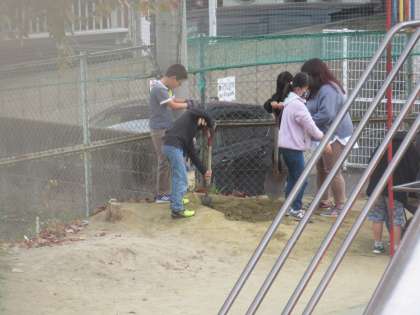 電気もガスもなかった明治時代,人の力で用水を建設したことを考えるために,地面を掘る体験的活動をしました。ほんの少し掘っただけでも大変。琵琶湖疏水をつくった人はすごいなあ,とおもいをめぐらせていました。