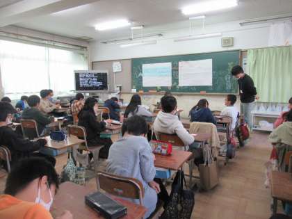 聾学校のお友達が交流に来ました。聾学校の先生のお話の後,みんなでドッジビーをして元気に遊びました。