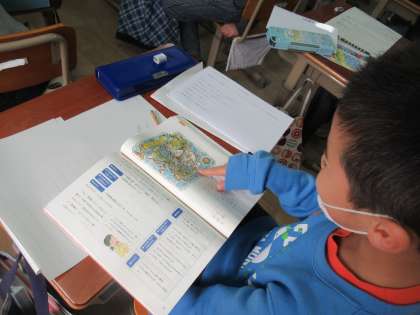 書く内容の中心を大事にして,絵を基に考えたことを物語にして文章を書く学習をしています。物語が思い浮かんでつぎつぎと,言葉がつむぎだされています。時には教科書の挿絵を見て,新しいアイデアを思いついています。