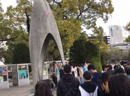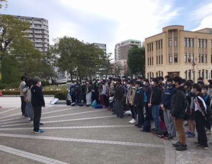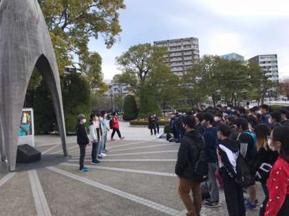 原爆の子の像の前で,平和式典を行いました。