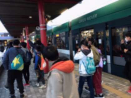 島口に到着しました。宮島口からフェリー乗り場に移動しました。