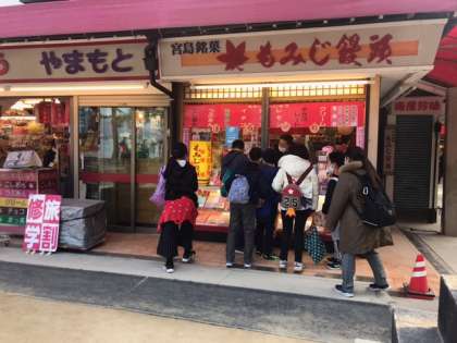 もみじ饅頭もいろいろな種類があり,値段も考えながら選んでいるようです。