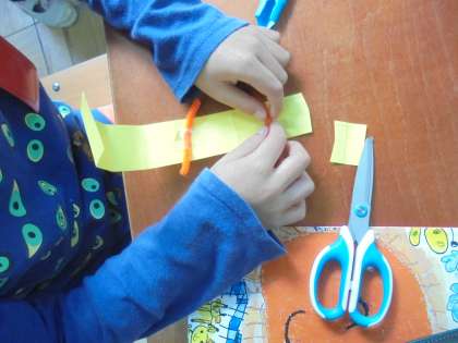 今日の学習では,すきまがすきですきまにあらわれる「すきまちゃん」を作りました。できた人はすきま探しをして,あちこちに置いてみては「ほらここ!」と楽しそうに言っていました。
