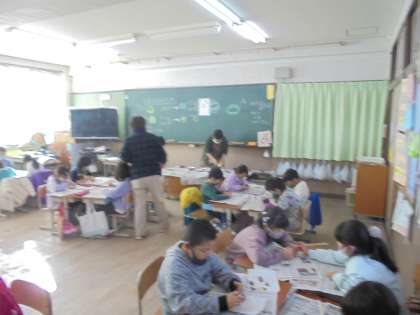 いもばんを作りました。竹串で,いもの断面をほっていきました。