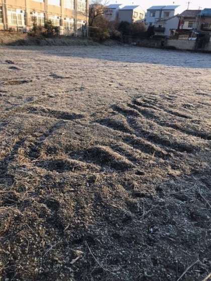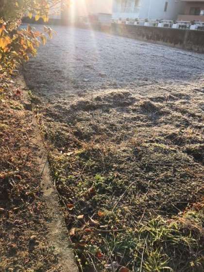 土の中に含まれている水分が氷となって,白くなっていました。これを霜(しも)といいます。踏みつけると,氷なので,シャリシャリという音がします。