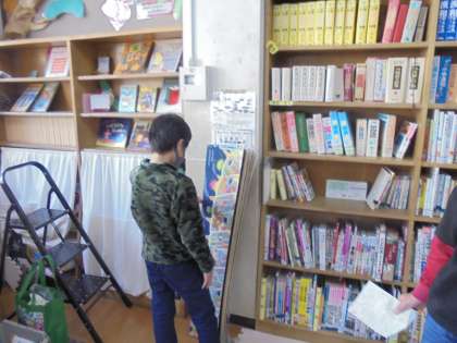 学校図書館に行って,読書を行いました。自分で好きな本選び,読書に親しみました。大型絵本を手にしてじっくりと読む姿も見られました。