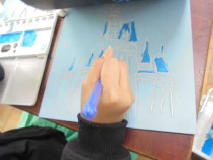 版画に取り組んでいます。色を塗って,しっかりと刷って作品を仕上げているところです。