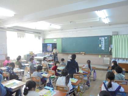 教科書の挿絵から想像して,主語と述語を大切にしながら,学習した漢字を使った文章を考えました。