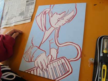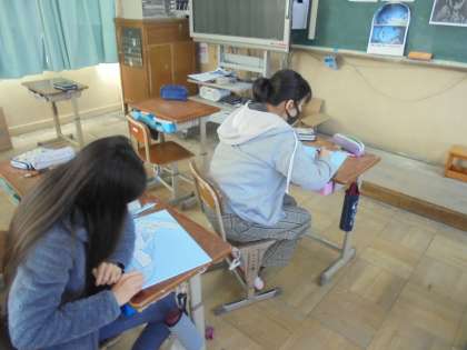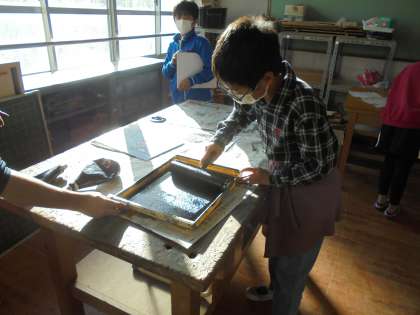 版画に取り組んでいます。彫る方向などを考えながら版を作っています。