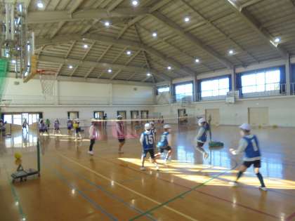 ソフトバレーボールを行いました。距離を取りながら,声をかけ合って活動をしました。