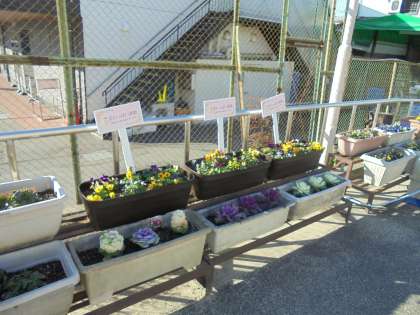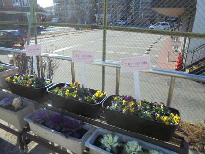 正門前には,今の時期に咲く花が植えられています。色鮮やかに咲いています。