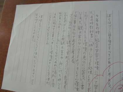 自分の意見文で交流をし,友達からもらった意見をもとにさらに考えを深めていました。