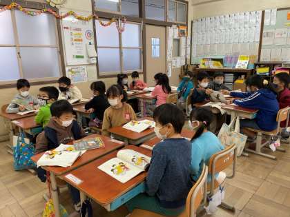 友達に好きな本を紹介したあと,班の人から質問をしてもらいました。