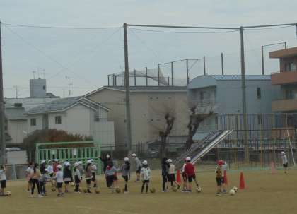 一人一人ドリブルをして,サッカーに慣れ親しんでいます。