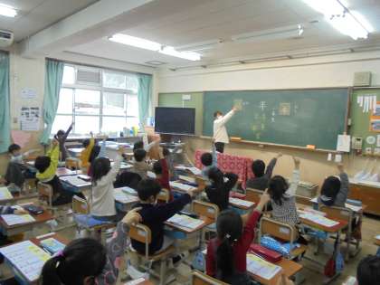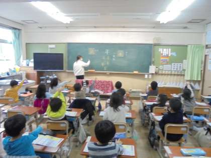 新出漢字の「年」と「立」を学習しました。たくさんの画数の「年」の書き順を確かめて,ドリルで学習をしました。